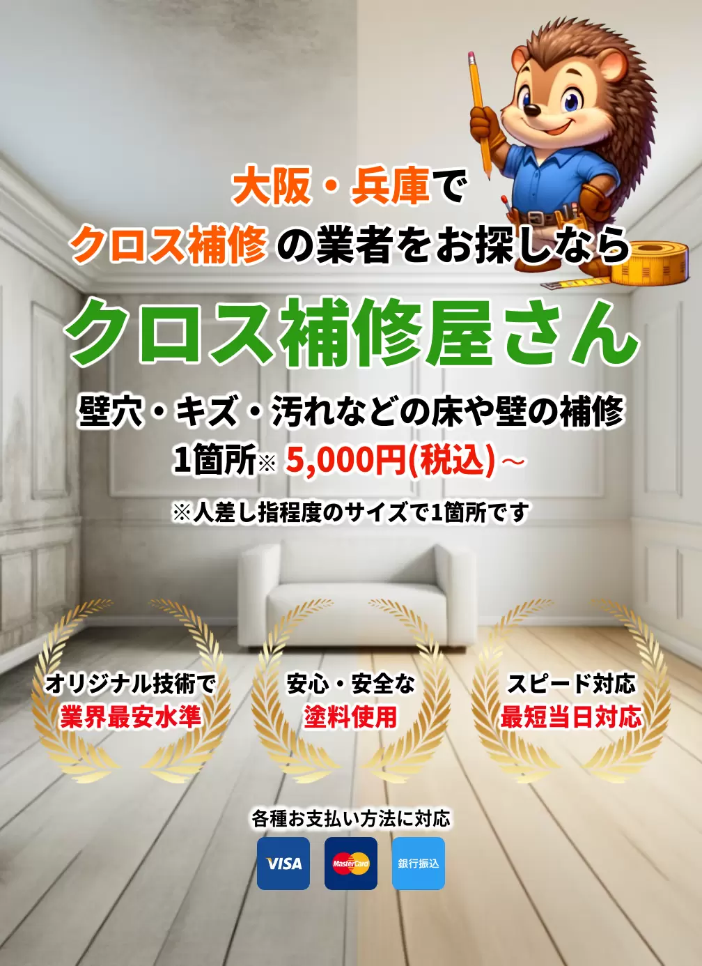 子どもが描いた落書きがあったのですが、クロス補修屋さんによって綺麗にしていただきました。